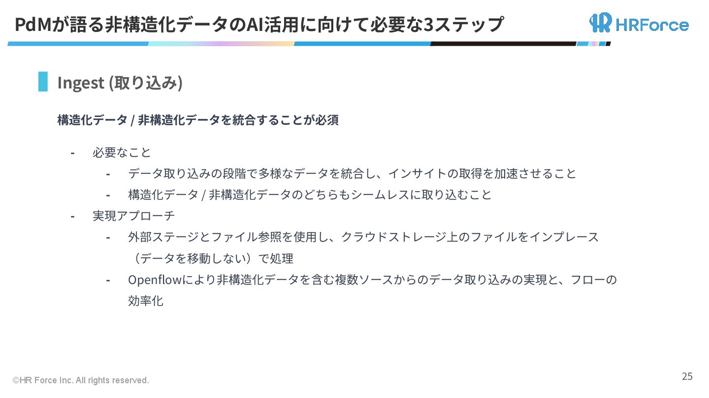 15. ©HR Force Inc. All rights reserved. 25 PdMが語る⾮構造化データのAI活⽤に向けて必要な3ステップ Ingest (取り込み)
