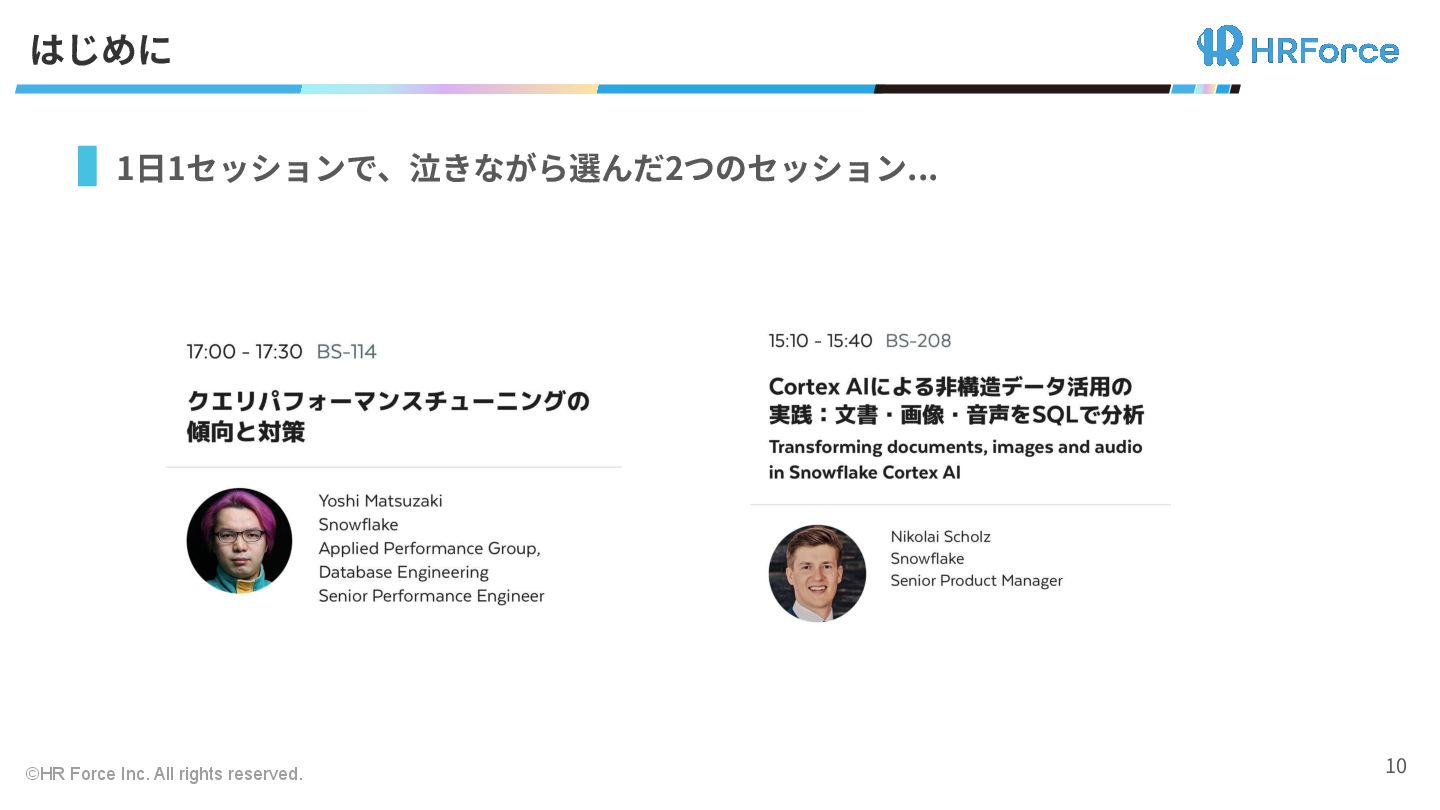 大盛況に終わった Snowflake World Tour Tokyo を振り返りながら、発表者が聴講したセッションの中で2つピックアップし、紹介しています。