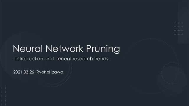 al., 2019[8]) For large-scale learning tasks on Transformer and ResNet-50, this paper reports that Magnitude Pruning is more useful than Variational Dropout and L0 Regularization, which have been shown to be useful for small-scale learning. In a large-scale learning task, training a network with Unstructured Pruning from scratch does not achieve the accuracy of a Pruning model retrained by inheriting the learned weights. 28 [8] Gale, Trevor, Erich Elsen, and Sara Hooker. "The state of sparsity in deep neural networks." arXiv preprint arXiv:1902.09574 (2019).