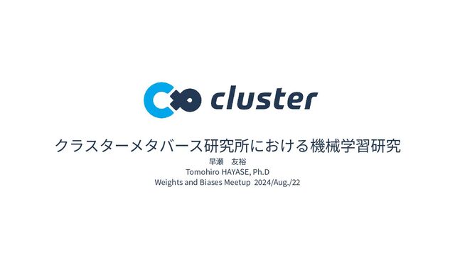 クラスターメタバース研究所における機械学習研究 早瀬 友裕 Tomohiro HAYASE, Ph.D Weights and Biases Meetup 2024/Aug./22