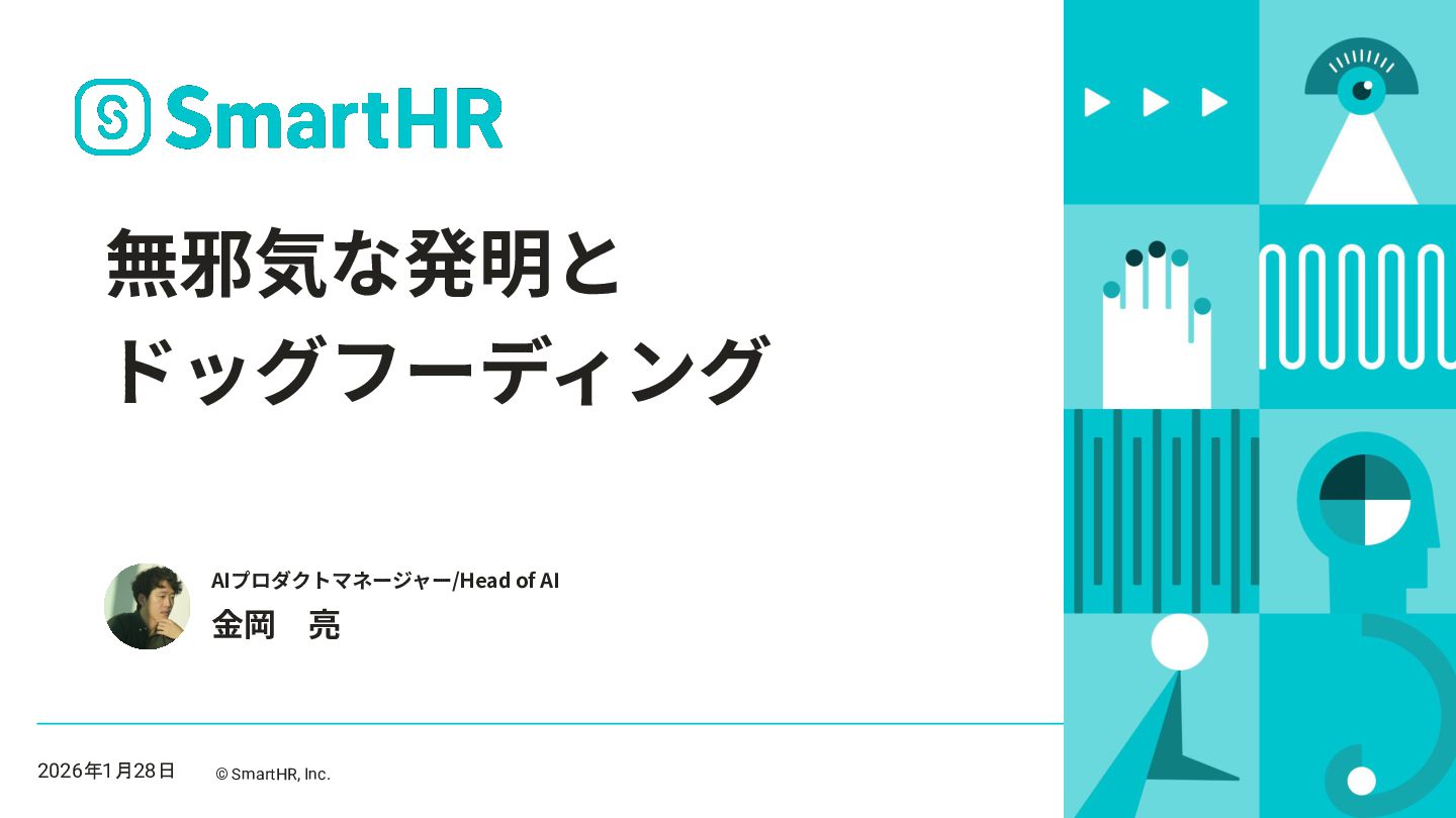 © SmartHR, Inc. 無邪気な発明と ドッグフーディング 2026年1月28日 ⾦岡 亮 AIプロダクトマネージャー/Head of AI