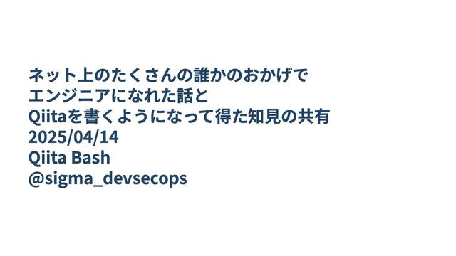 ネット上のたくさんの誰かのおかげで エンジニアになれた話と Qiitaを書くようになって得た知見の共有 2025/04/14 Qiita Bash @sigma_devsecops