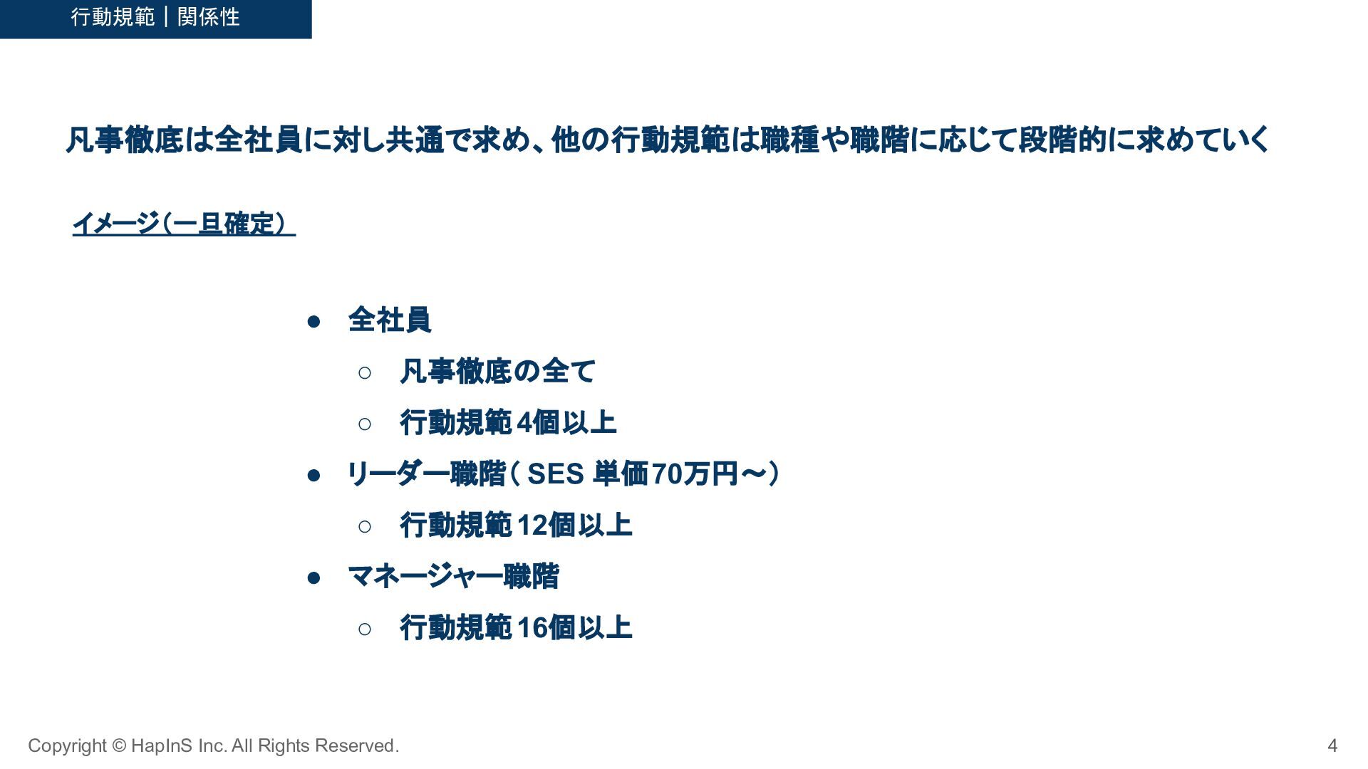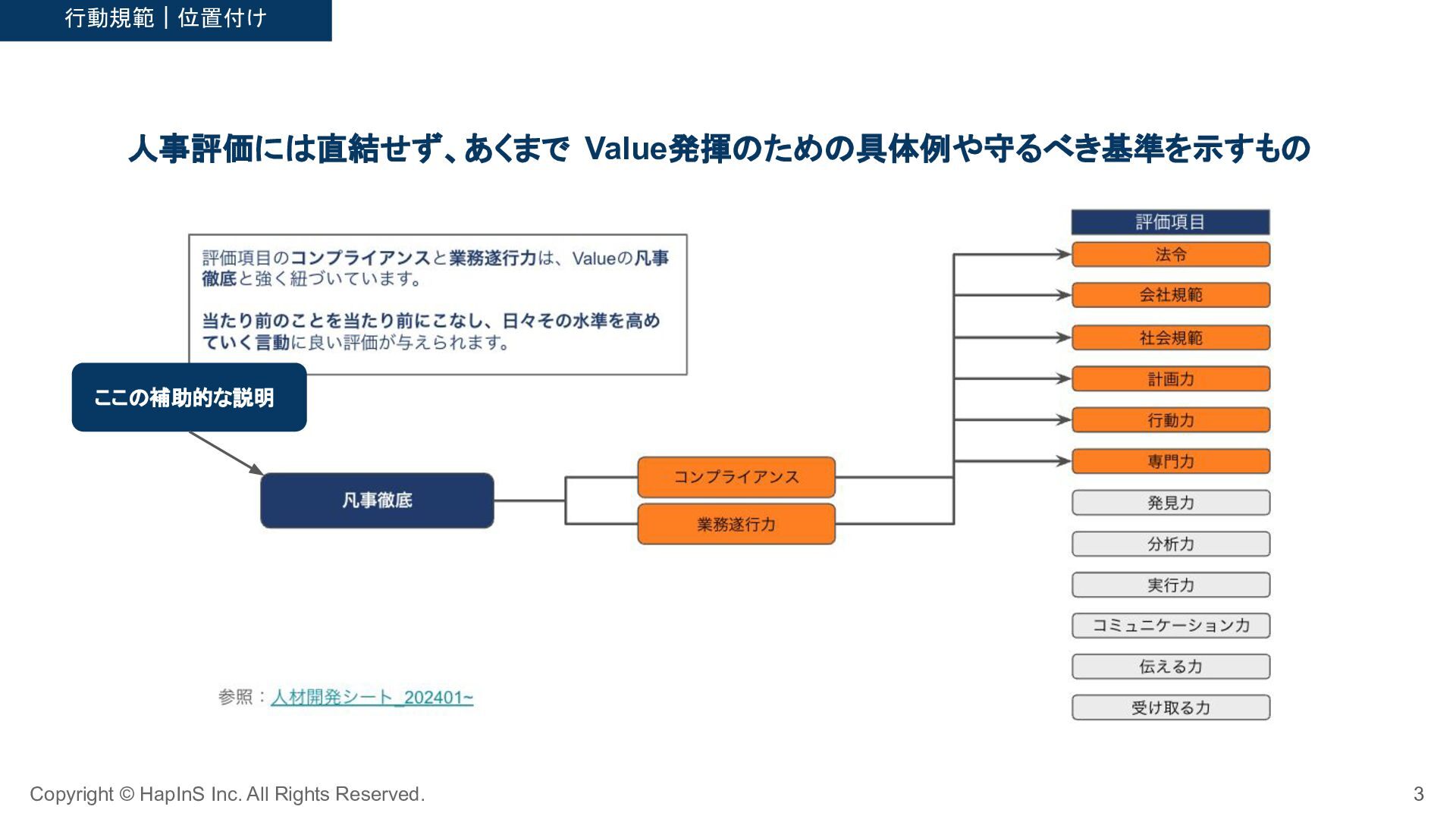Copyright © HapInS Inc. All Rights Reserved. 3 行動規範|位置付け 人事評価には直結せず、あくまで
