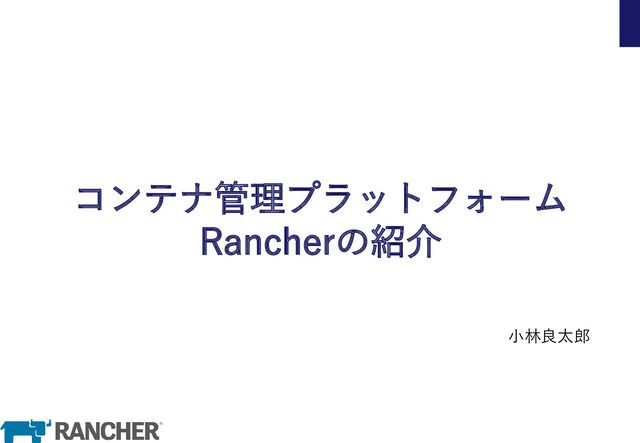 an increasingly popular way to manage containers—it's being used to run tens of thousands of clusters. With Kubernetes becoming the fastest developing technology in the container ecosystem, we saw an opportunity. And rebuilt Rancher on Kubernetes. Rancher 2.0 provides the same great user experience on all Kubernetes clusters, whether they are managed using Rancher or existing Kubernetes clusters. The result? It’s now even easier for you to adopt Kubernetes and run containers. Rancherのコンテナ管理プラットフォームはコンテナの管 理方法としてかなり普及してきて、数万のクラスタを実行 するために使用されています。 Kubernetesがコンテナエコシステムの中では最速で開発 されている技術となったことを、我々はチャンスと見まし た。 そしてKubernetes上でRancherを作り直しました。 Rancher 2.0は、Rancherまたは既存のKubernetesクラス タを使って管理されている場合でも、すべての Kubernetesクラスタで同じ優れたユーザーエクスペリエ ンスを提供します。 結果? これで、Kubernetesを使ってコンテナを実行する のがさらに簡単になりました。