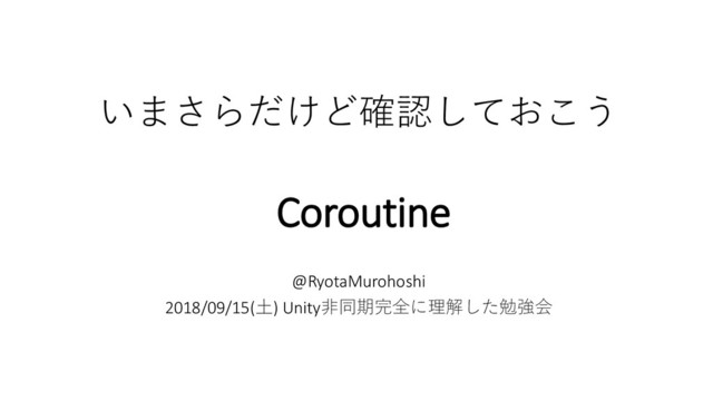 いまさらだけど確認しておこう Coroutine @RyotaMurohoshi 2018/09/15(土) Unity非同期完全に理解した勉強会