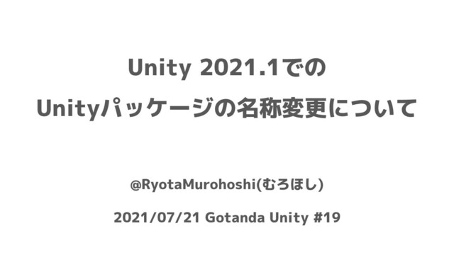 Unity 2021.1での Unityパッケージの名称変更について @RyotaMurohoshi(むろほし) 2021/07/21 Gotanda Unity #19