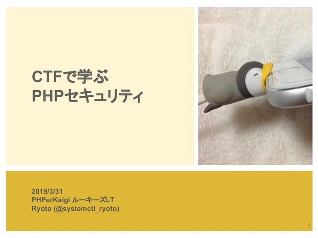 CTFで学ぶ PHPセキュリティ 2019/3/31 PHPerKaigi ルーキーズLT Ryoto (@systemctl_ryoto) 1
