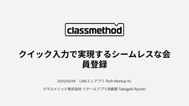 2025年3月4日にクラスメソッド株式会社日比谷オフィスにて開催された「【ブレイク間近】LINEミニアプリ Tech Meetup #1【LY社員登壇】」にて「クイック入力で実現するシームレスな会員登録」というタイトルで登壇した際の登壇資料になります。