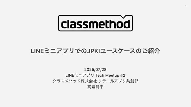◦ LINEミニアプリ運⽤保守‧追加開発 ◦ 新規案件のwebアプリ開発 • 実績 ◦ LINE API Expert ◦ 2025 Japan AWS Jr. Champions • 部署 ◦ クラスメソッド株式会社 ◦ リテールアプリ共創部‧マッハチーム ◦ 24新卒 • 名前 ◦ ⾼垣⿓平 ◦ X:るおん(@ruonp24)