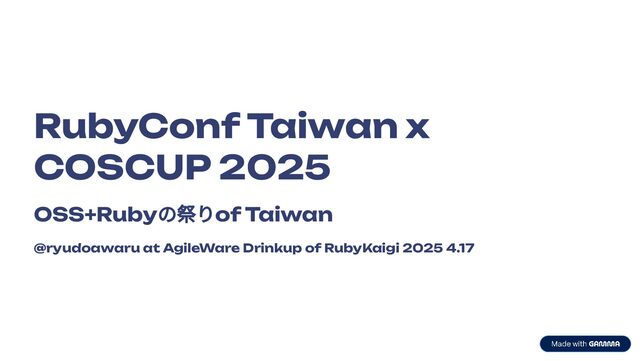 RubyConf Taiwan x COSCUP 2025 OSS+Rubyの祭りof Taiwan @ryudoawaru at AgileWare