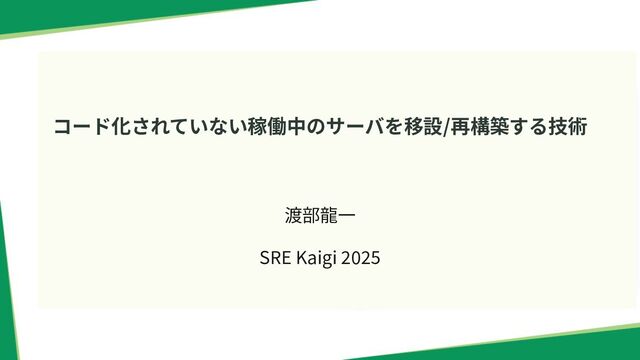 コード化されていない稼働中のサーバを移設/再構築する技術 渡部⿓⼀ SRE Kaigi 2025