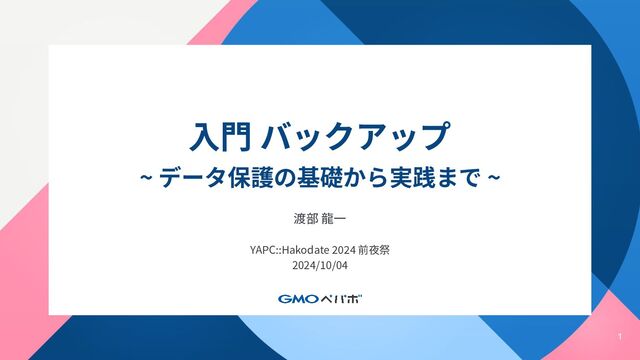 1 ⼊⾨ バックアップ ~ データ保護の基礎から実践まで ~ 渡部 ⿓⼀ YAPC::Hakodate 2024