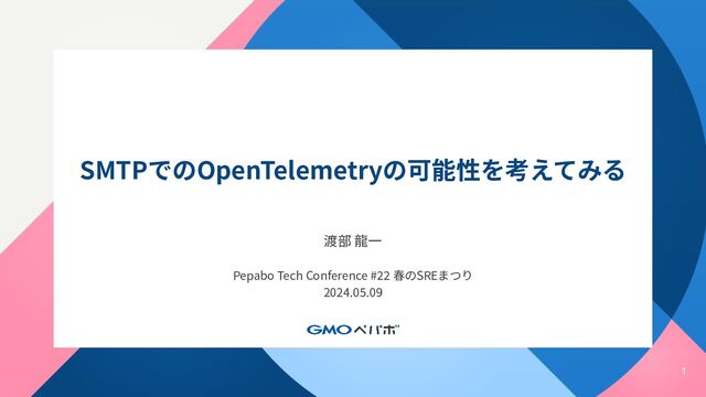 1 SMTPでのOpenTelemetryの可能性を考えてみる 渡部 ⿓⼀ Pepabo Tech Conference #22 春のSREまつり 2024.05.09