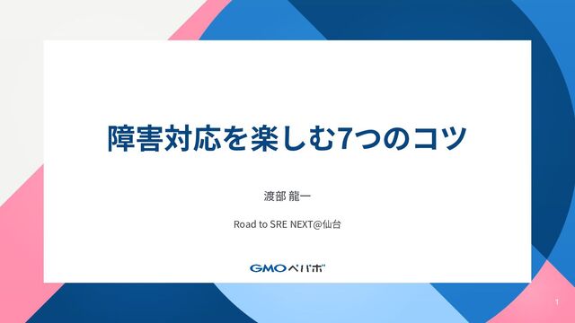 1 障害対応を楽しむ7つのコツ 渡部 ⿓⼀ Road to SRE NEXT@仙台