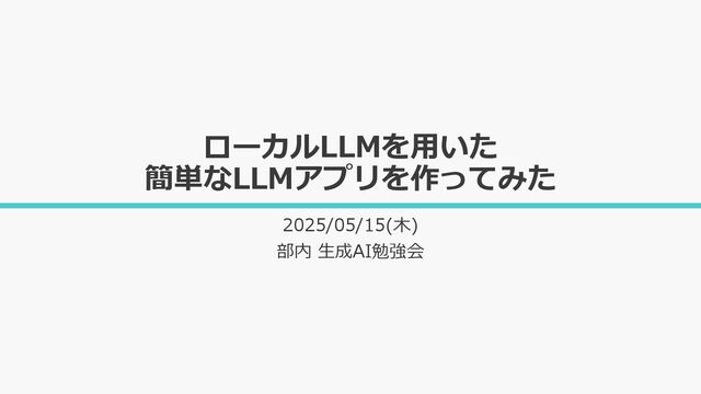 ローカルLLMを用いた 簡単なLLMアプリを作ってみた 2025/05/15(木) 部内 生成AI勉強会