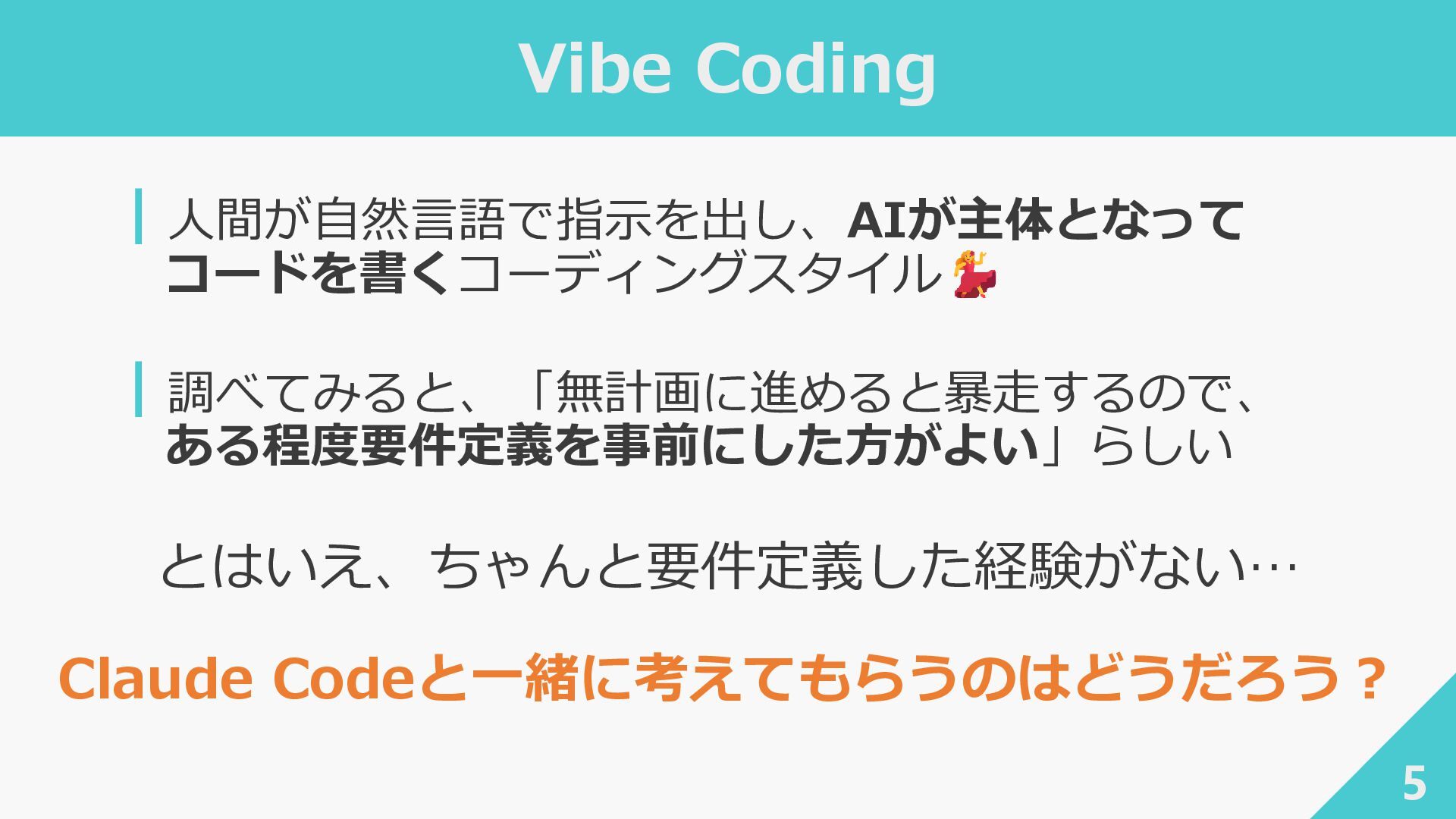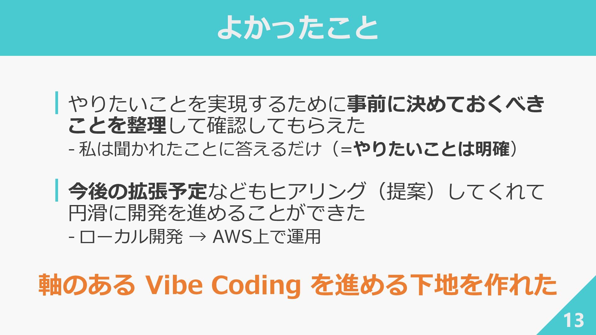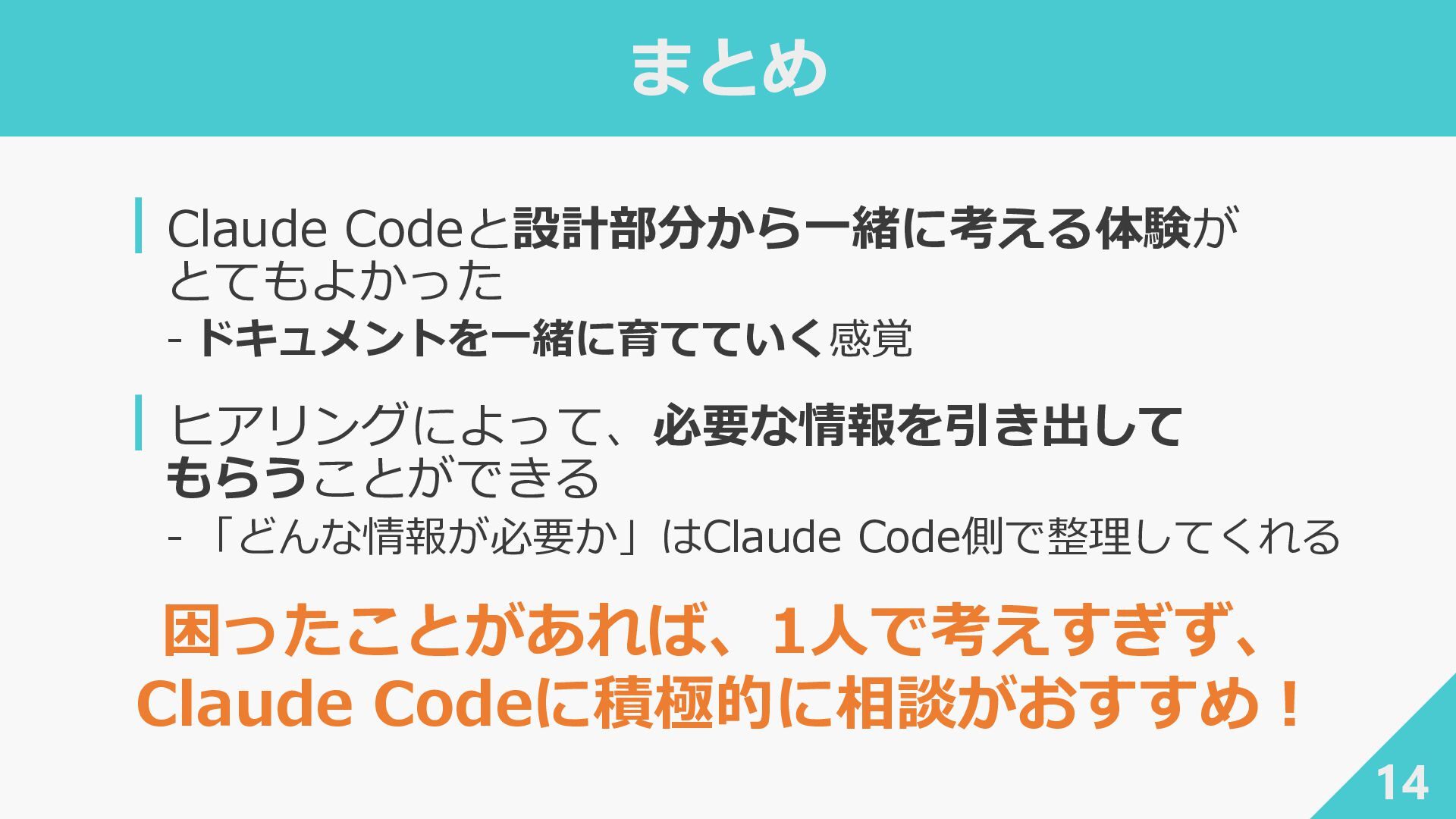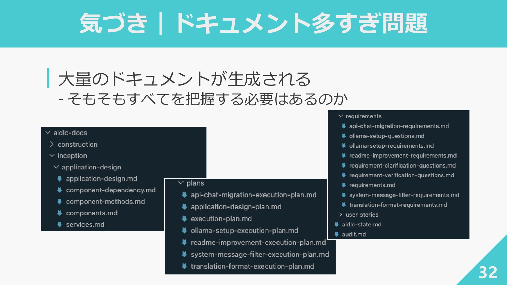 ┃awslabs/aidlc-workflows: AI-Driven Life Cycle (AI-DLC) adaptive workflow steering rules for AI coding agents ‐ https://github.com/awslabs/aidlc-workflows ┃AWSが推進するAI駆動開発ライフサイクル入門 〜 AI駆動開発時代に必要な人材とは 〜 / introduction_to_aidlc_and_skills - Speaker Deck ‐ https://speakerdeck.com/fatsushi/introduction-to-aidlc-and-skills ┃Claude Codeに要件をヒアリングしてもらった体験がかなり良かった - Speaker Deck ‐ https://speakerdeck.com/ryuki0947/the-experience-of-having-claude-code-gather-requirements-was-quite- good 38