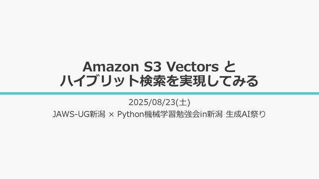 "key": vector_id, "data": {"float32": embedding}, # ベクトルデータ "metadata": { "source_document": document_key, "chunk_index": str(i), "content_preview": chunk[:500], # 最初の500文字 "document_type": "txt", "chunk_length": str(len(chunk)) } } response = s3_vectors_client.put_vectors( vectorBucketName=vector_bucket_name, indexName=index_name, vectors=vectors # 複数ベクトルをまとめて保存 ) put_vectorsを利用
