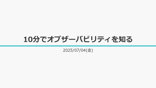 10分でオブザーバビリティを知る 2025/07/04(金)