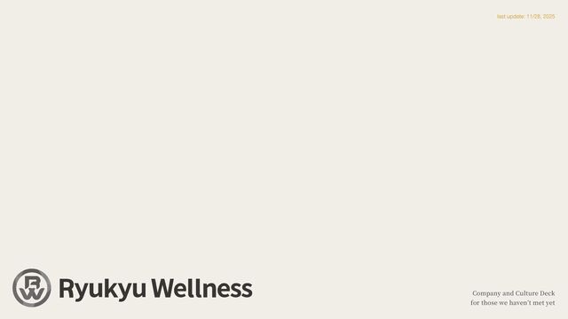 © 2025 Ryukyu Wellness Inc. Life is Wellness. 1 5 規模拡 大 を優先とせず、 「意味や意義」 を優先とする 経営 方 針 1. 適切に利益を 生 み出し、 継続的に世の中に価値を発揮し続ける 2. 利益を独り占めせず、 協 力 者/関係者に最適に還元する 3. アジャイル型で事業をみんなで作り、 みんなで育てる 4. 勝ち筋発掘やリスクヘッ ジをしつつ、 挑戦的な投資をする 5. Policy