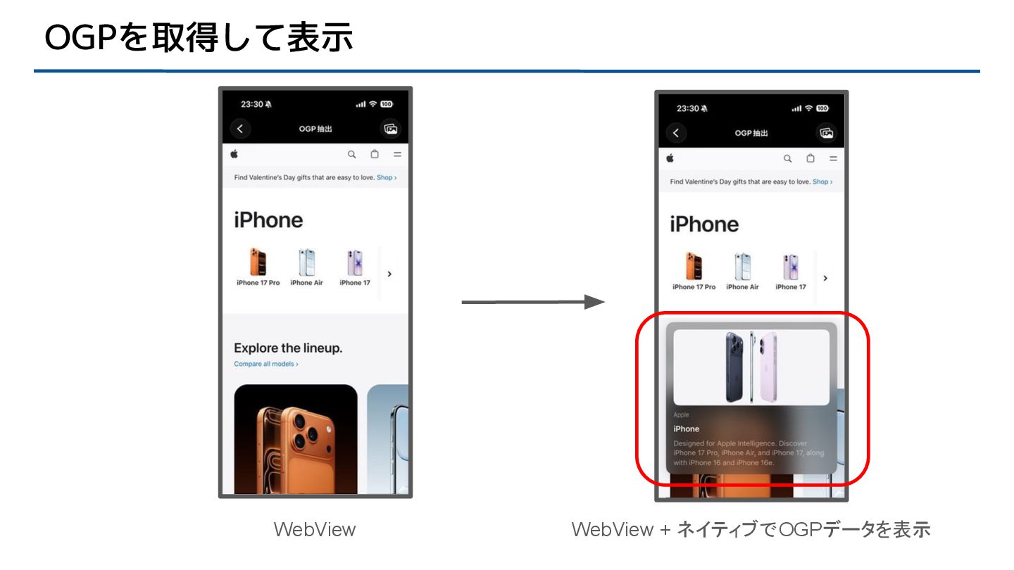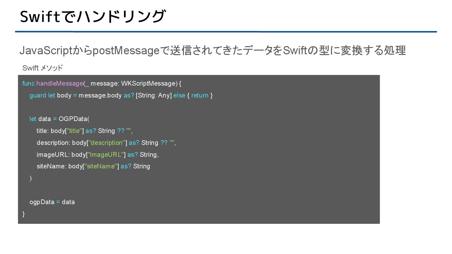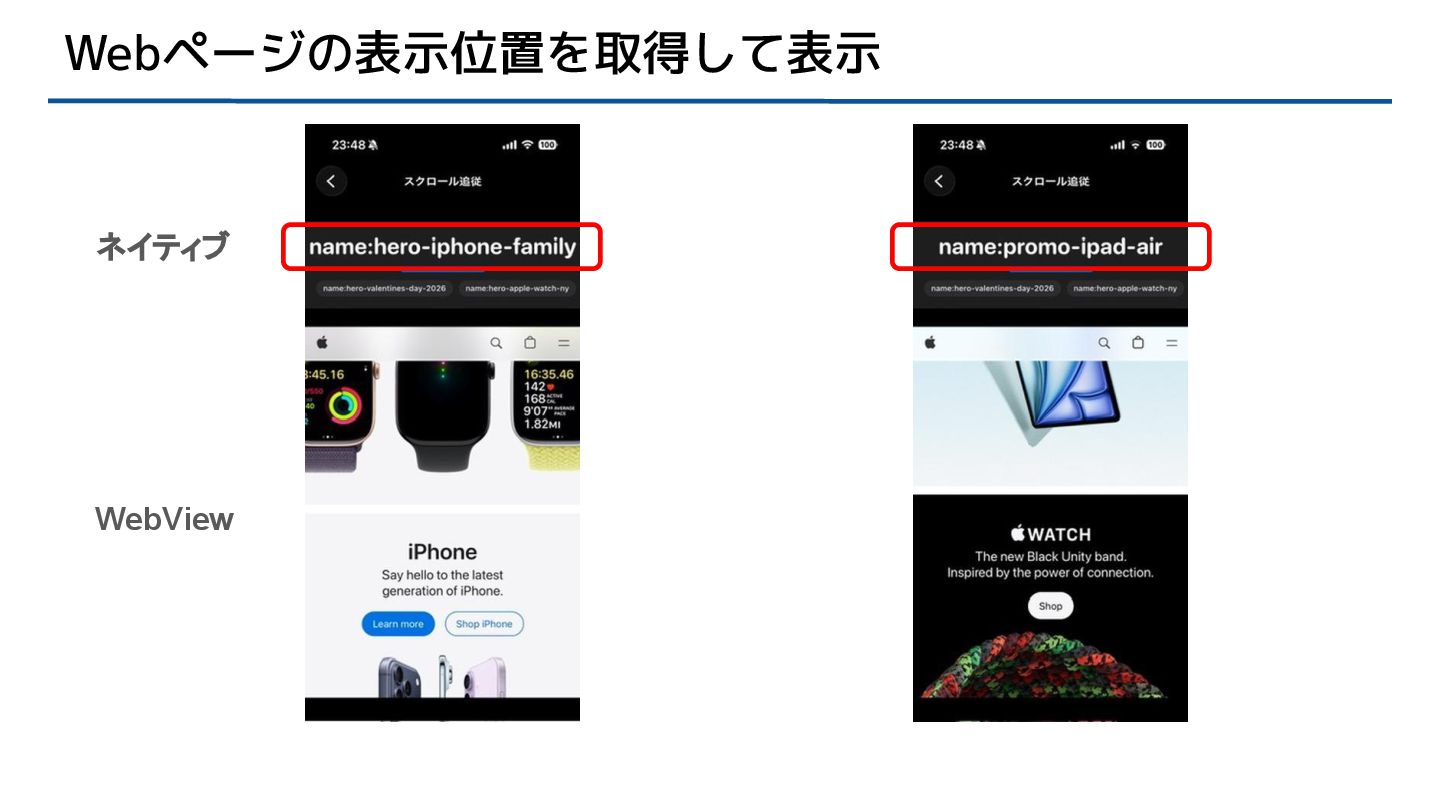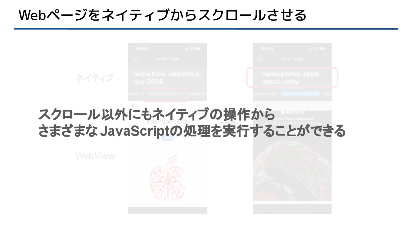 """ (function() { ~~~ 省略 ~~~ const observer = new IntersectionObserver((entries) => { ~~~ 表示中のセクションを監視し、postMessageで送信 ~~~ }, { threshold: [0.3, 0.5] }); ~~~ 省略 ~~~ })(); """ return [WKUserScript(source: js, injectionTime: .atDocumentEnd, forMainFrameOnly: true)] } userScripts