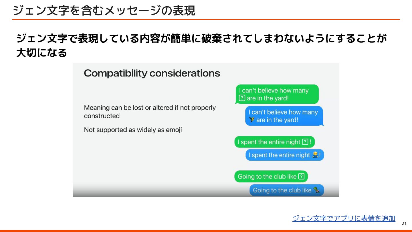 21 ジェン文字を含むメッセージの表現 ジェン文字で表現している内容が簡単に破棄されてしまわないようにすることが 大切になる ジェン文字でアプリに表情を追加