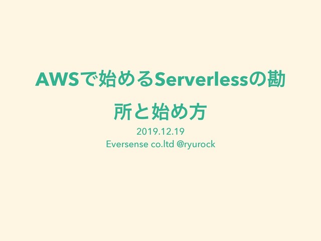 AWSͰ࢝ΊΔServerlessͷצ ॴͱ࢝Ίํ 2019.12.19 Eversense co.ltd @ryurock