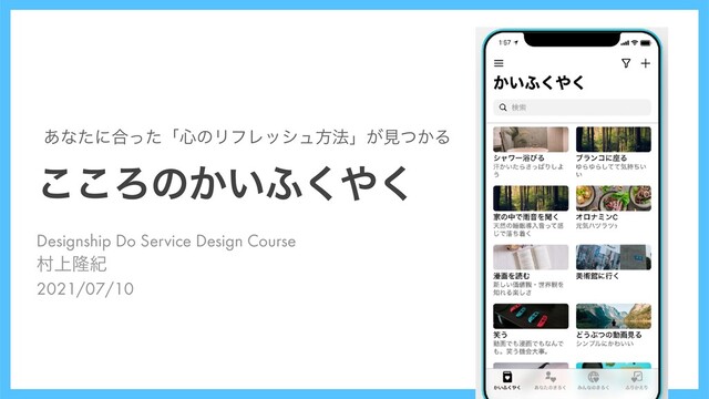 Designship Do Service Design Course ଜ্ོل 2021/07/10 ͜͜Ζͷ͔͍;͘͘ ͋ͳͨʹ߹ͬͨʮ৺ͷϦϑϨογϡํ๏ʯ͕ݟ͔ͭΔ