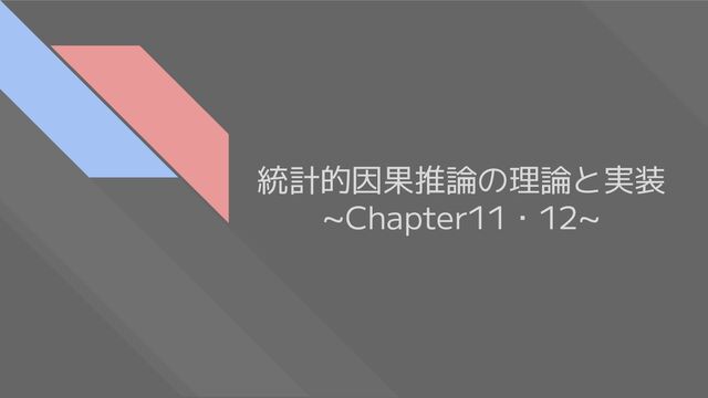 社内勉強会の発表資料です.高橋先生の「統計的因果推論の理論と実装」のChapter11・12の内容(傾向スコアマッチングや層化解析法,逆確率重み付け法)についてまとめています.