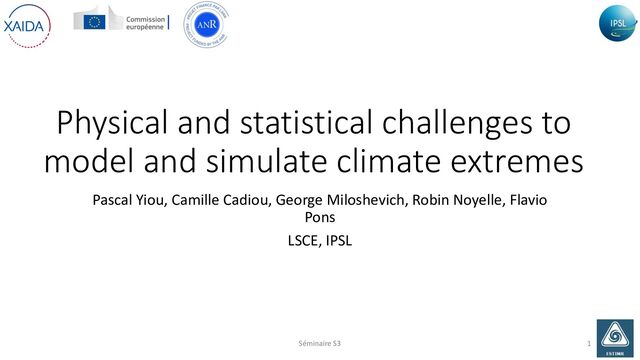 Title — Physical and statistical challenges to model and simulate climate extremes