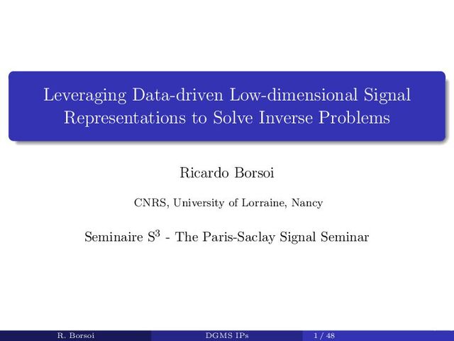 Title — Leveraging data-driven low-dimensional signal representations to solve inverse problems