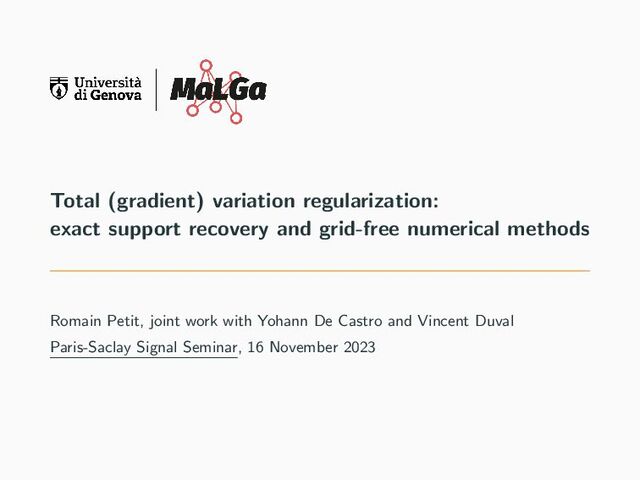 methods Romain Petit, joint work with Yohann De Castro and Vincent Duval Paris-Saclay Signal Seminar, 16 November 2023