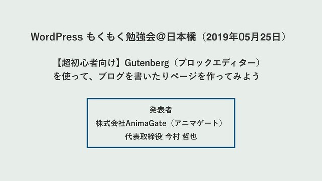 2019年05月25日(土)に開催された WordPress もくもく勉強会@日本橋で発表したスライドです。