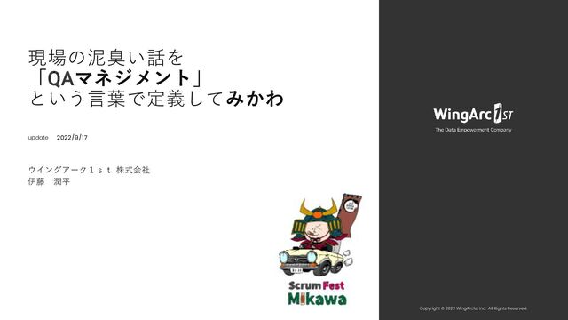 Reserved. ねらい 一昔前まではテスト=QAという文化が根付いていました。 しかし、今では一言で「品質」といっても、開発プロジェクトの計画やコード実装中はもちろんのこと、リリース後も、モニタ リングや可観測性からの改善活動も常に「品質」はついて回ります。 そうです。テストと言うアクティビティはあらゆるフェーズで実行する必要があります。 この研修のタイトルは「Agile Testing」ですが、アジャイルという枠にとらわれていません。 開発エンジニアや、テストエンジニアだけでなく、継続的なデリバリーに関わるすべての人が協力し合うマインド。それがAgile Testingです。 この研修では特に、お客様に提供する「価値」を定義し、テストを組み込んで、頻繁なデリバリーに適合するような自動テスト を実装及び管理することを学べます。 個人的な想い ウイングアーク1stはこれまでパッケージベンダーとして、製販一体となって帳票製品であるSVFを中心に、BI製品のDr.Sum やMotionBoardを販売してきました。今では、新たな事業をはじめとして、DE事業では様々なDXサービスを展開し、BD事業で はInvoice Agentが波に乗っています。 我々はサービスを提供している限り、継続的なデリバリーは永遠に終わりません。お客様への「価値」は常に変化し、開発も テストも実装し続け、常に品質のことを考えます。 私はウイングアークに10年以上QAの仕事をして思うのは、品質保証やテストの考えも変化しているということです。 ソフトウェアの品質特性を意識した網羅性のあるテストにフォーカスするよりも(それも大事ですが)、顧客解像度にフォー カスしたテストや頻繁なデリバリーに対するリスク管理が肝になっています。 デリバリーに関わるすべての人をWhole Teamとして、Whole Team全員が品質の責任があるのがAgile Testingの素晴らしい要素で あり、今後そうであるべきだと思っています。 個人的にはSPQI部から、Whole Team全員が品質に意識できる状態を作れるようになることを目指したいと思っています。 品質、テストに関してさらに向上していこうとするモチベーションのある方は受講をお勧めします。 頻繁なデリバリーに工数が奪われて本来やるべきことができないと悩んでいる方、テストを自動化したいけど先ずは何をやる べきか迷っている方、「価値」や「顧客解像度」とは何かを模索している方は、さらに受講することを強くお勧めします。 各開発部門に説明
