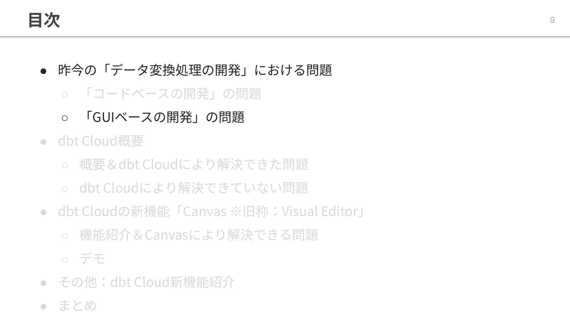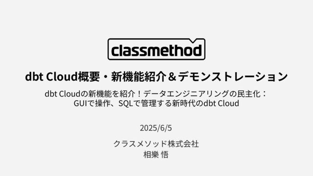 2025/6/5に開催された「dbt Cloudの新機能を紹介!データエンジニアリングの民主化:GUIで操作、SQLで管理する新時代のdbt Cloud」の登壇資料です https://events.classmethod.jp/seminar/250605-dbt-cloud-webinar/