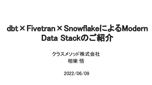 dbt×Fivetran×SnowflakeによるModern Data Stack~データ活用までの準備を楽々に~ https://dev.classmethod.jp/news/20220609-dbt-webinar/