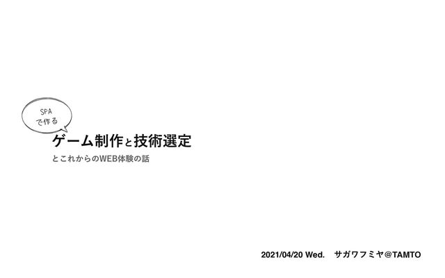 SPA で作る とこれからのWEB体験の話 2021/04/20 Wed. @TAMTO ゲーム制作と技術選定 サガワフミヤ