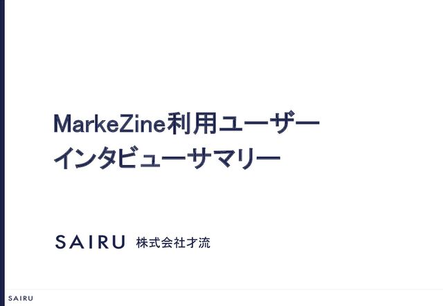l トレンドワード(Cookie規制など)の解説記事を見ることも多い 3.利用方法 l ブックマークからTOPページに遷移し、気になる記事を閲覧する(週2回程度の頻度) l 特定の調査テーマがある場合は、サイト内検索を利用する l 記事広告と通常記事の見分けがついていない 4.導入までの経験 l 導入までの経験はないが、MarkeZineで初めて認知したサービスは多い(Marketo、Criteo、KARTEなど) l MarkeZineに記事広告を出稿して、問い合わせをもらった経験はある。事例など具体的な内容の方が、反応がいい 5.閲覧後の行動 l - 6.情報収集の方法 l ferret l IT系メディア(ITmedia、日経クロステック) l Twitter、Facebook マーケティング支援ベンダーの営業責任者