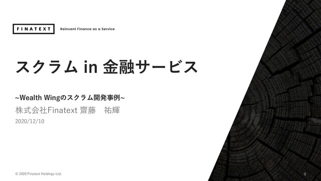 スクラム in ⾦融サービス ~Wealth Wingのスクラム開発事例~ 株式会社Finatext 齋藤 祐輝 2020/12/10 ©