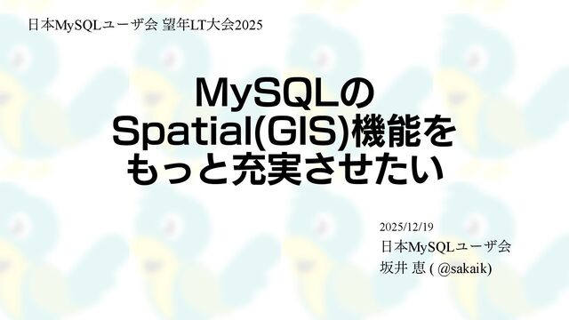 2025年12月19日に新宿@東京 にて開催された「日本MySQLユーザ会 望年LT大会2025」で発表した資料です。ライトニングトークです(公称5分、実際8分程度話した)。