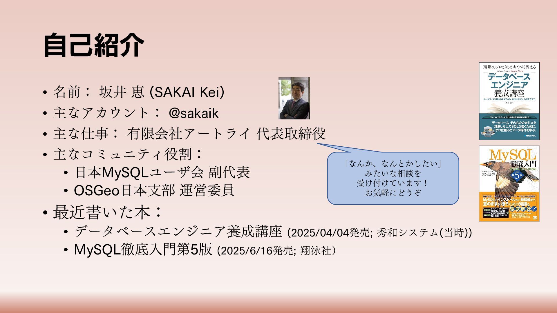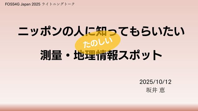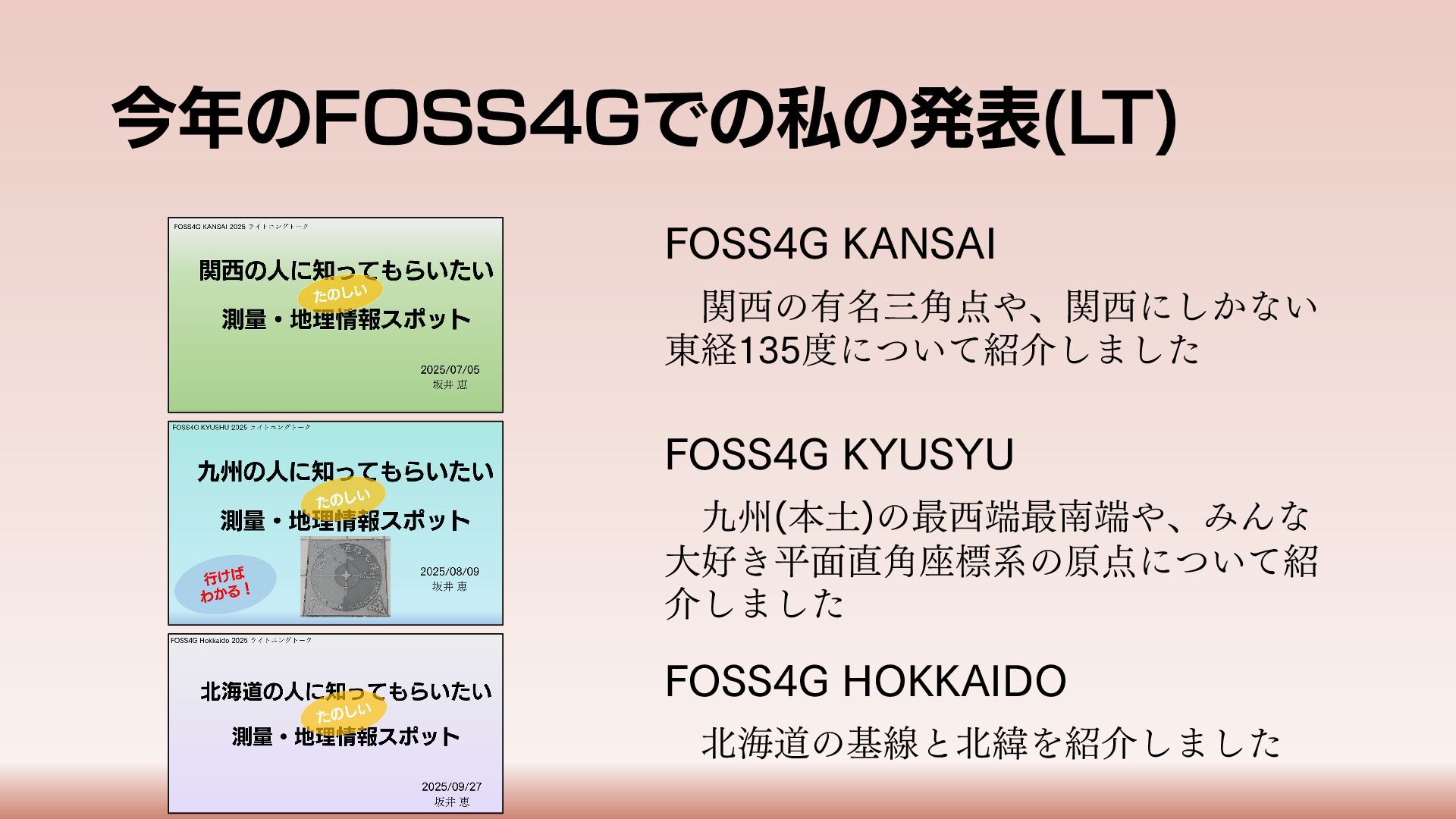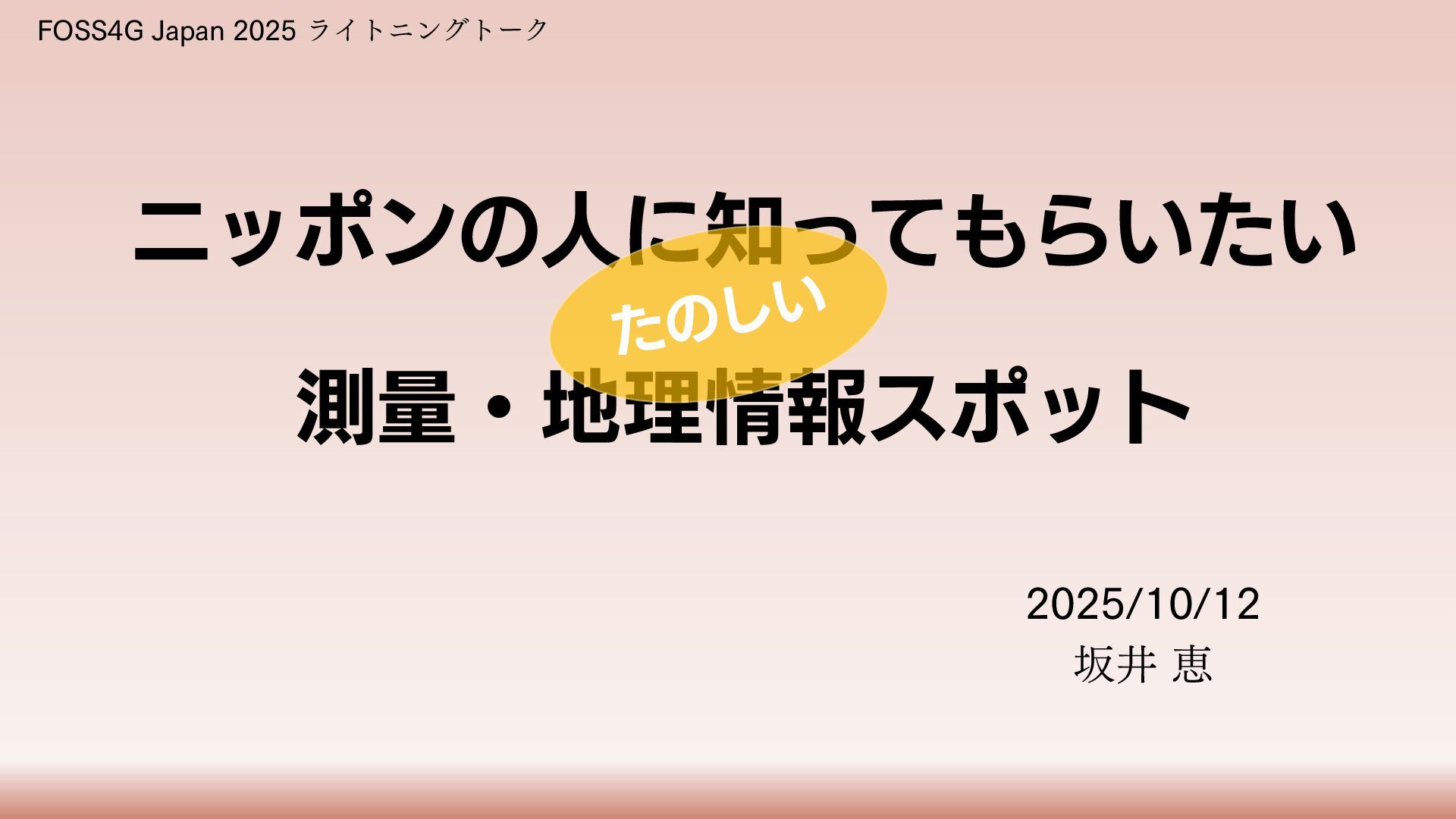 2025年10月12日東京で開催された FOSS4G Japan コアデイ後の懇親会にてライトニングトークとして発表した資料です。