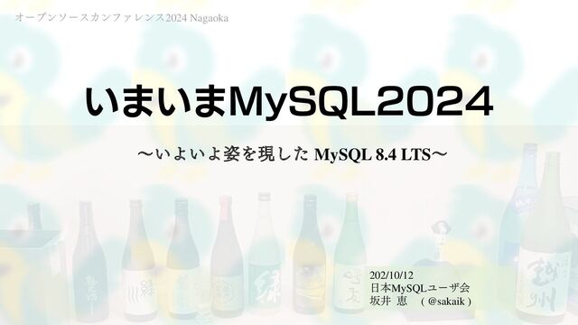 いまいまMySQL2024 ~いよいよ姿を現した MySQL 8.4 LTS~ オープンソースカンファレンス2024 Nagaoka 202/10/12 日本MySQLユーザ会 坂井