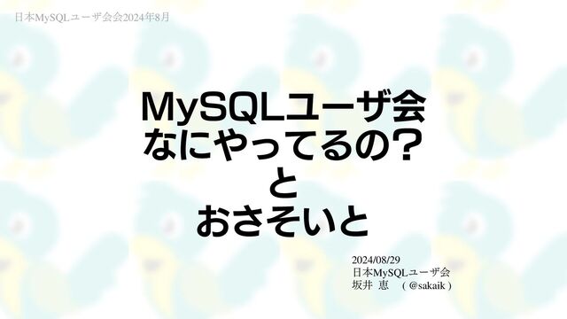 2024年8月29日に東京・中野で開催された「日本MySQLユーザ会2024年8月オフライン」でのLT発表市資料です。 別名「いろいろたいへんなの...」。 酒席での軽い吐露ですので、ご笑覧ください。書いてある内容は結構本気です。あなたがあなたの言葉で発信する機会を増やす、その集合体が「MySQL」を取り巻くコミュニティのパワーになるので、多くの人がぜひ(ふつうに)発信する側の人になってほしいなと願う次第です。