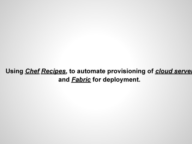 Chef approach to provision a server. • Chef Concepts in Detail. • Working with Chef Solo in Detail. • Why, What and How of Fabric? • No Provisioning demo, but a fabric demo, if time permits.