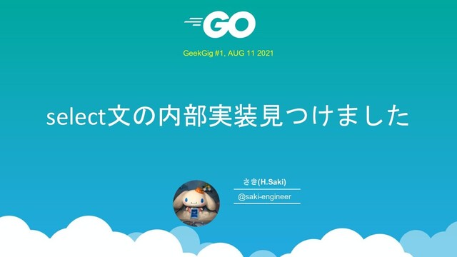 select文の内部実装見つけました GeekGig #1, AUG 11 2021 さき(H.Saki) @saki-engineer
