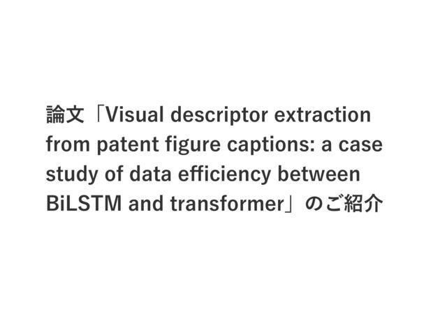 論文「Visual descriptor extraction from patent figure captions: a case study of data efficiency between BiLSTM and transformer」の紹介をしています。