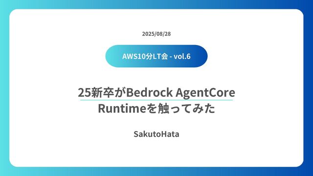 AWS10分LT会 - vol.6 25新卒がBedrock AgentCore Runtimeを触ってみた SakutoHata 2025/08/28