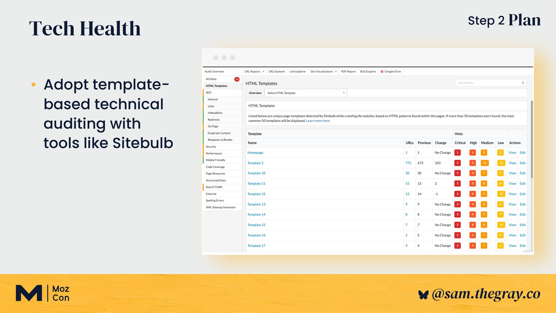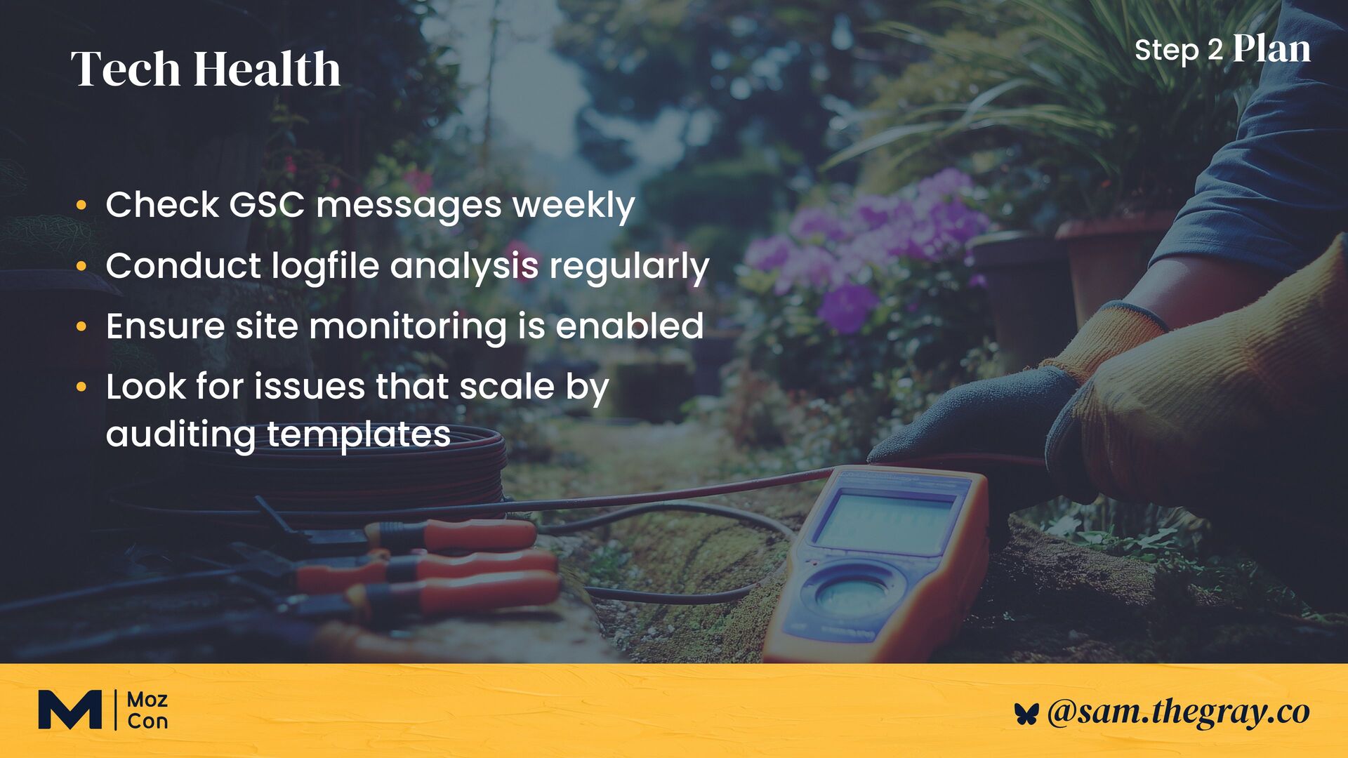 • Ensure site monitoring is enabled • Look for issues that scale by auditing templates Tech Health Plan Step 2