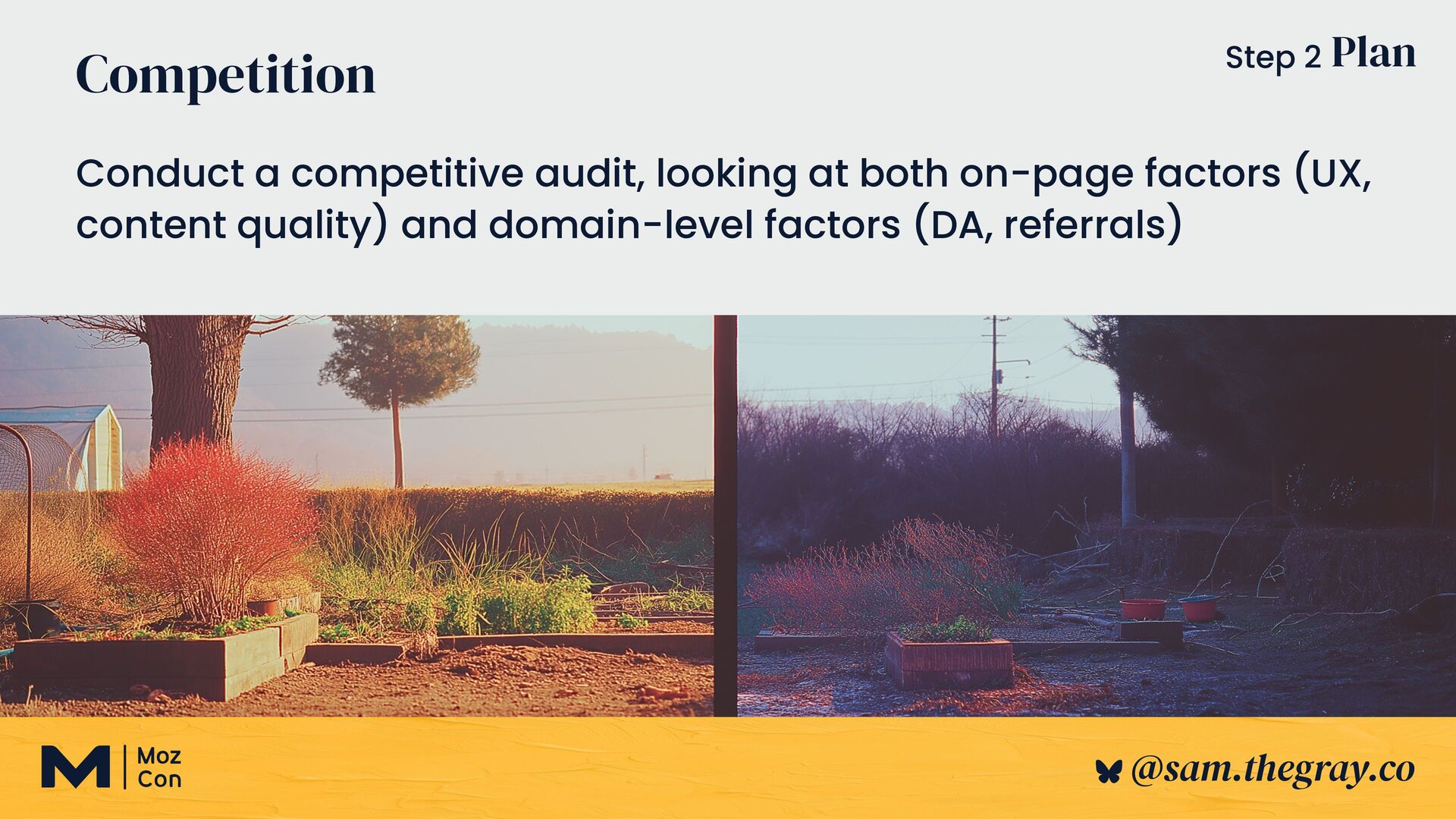 content quality) and domain-level factors (DA, referrals) Competition Plan Step 2