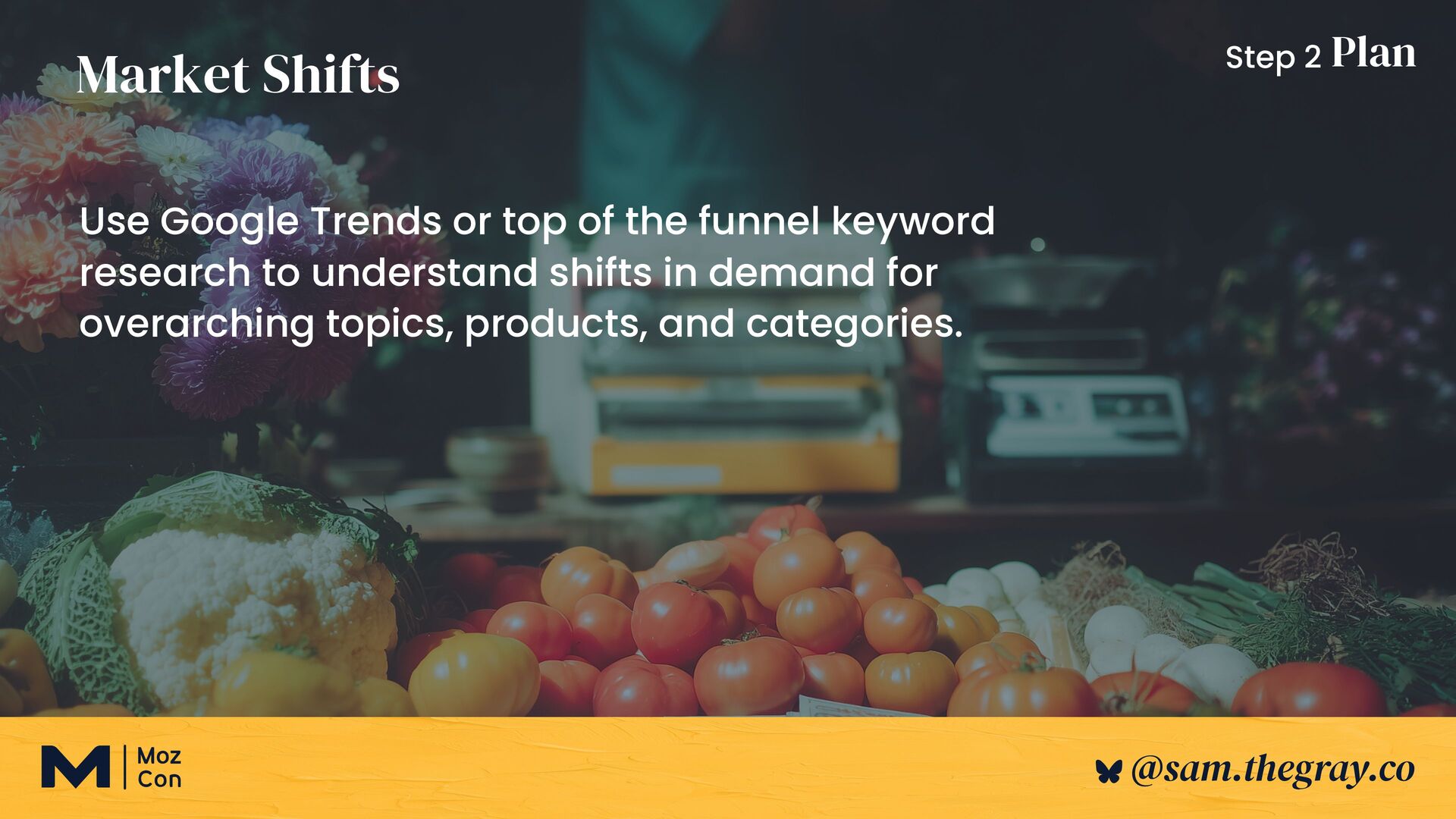 to understand shifts in demand for overarching topics, products, and categories. Market Shifts Plan Step 2