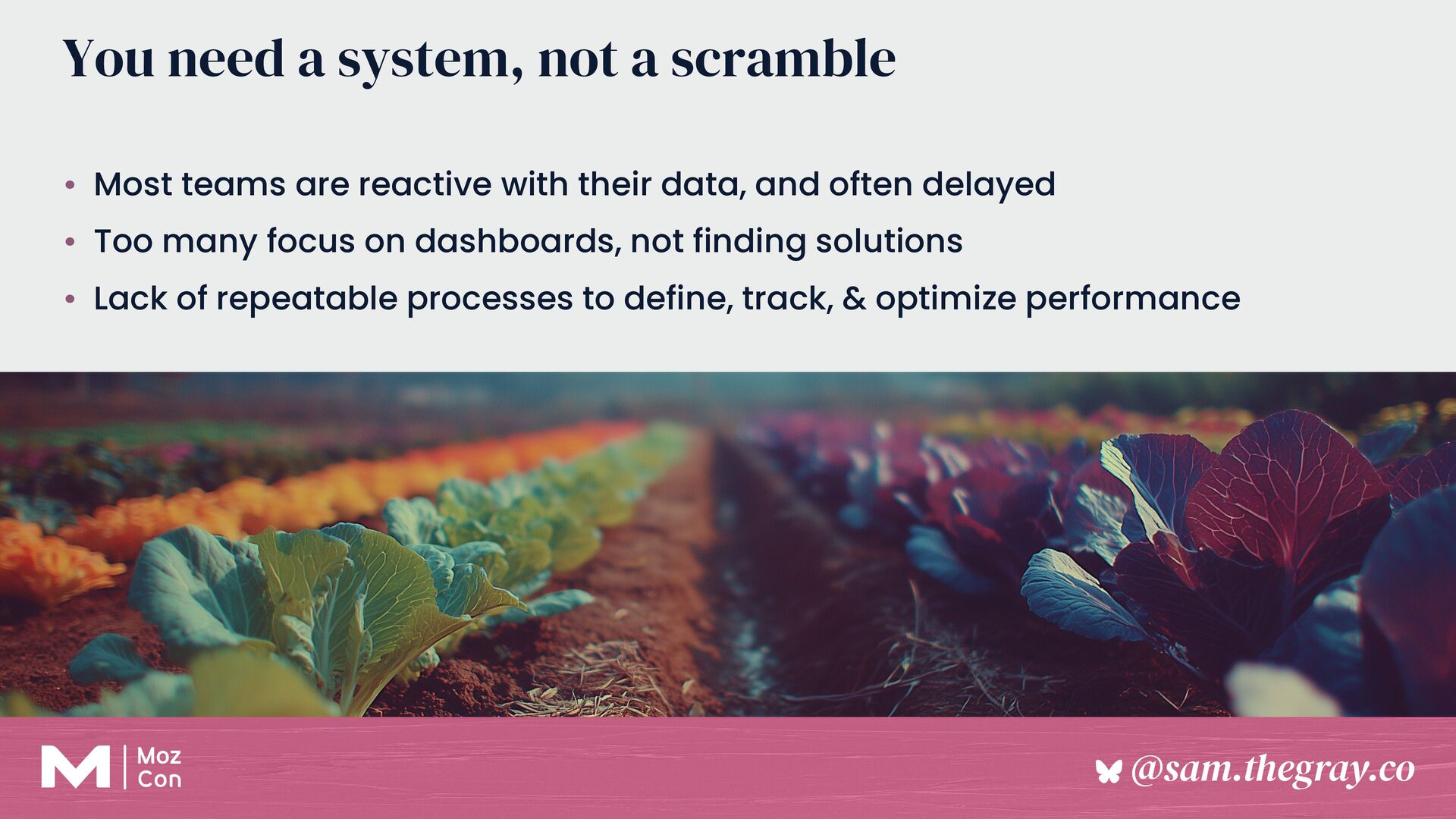 are reactive with their data, and often delayed • Too many focus on dashboards, not finding solutions • Lack of repeatable processes to define, track, & optimize performance